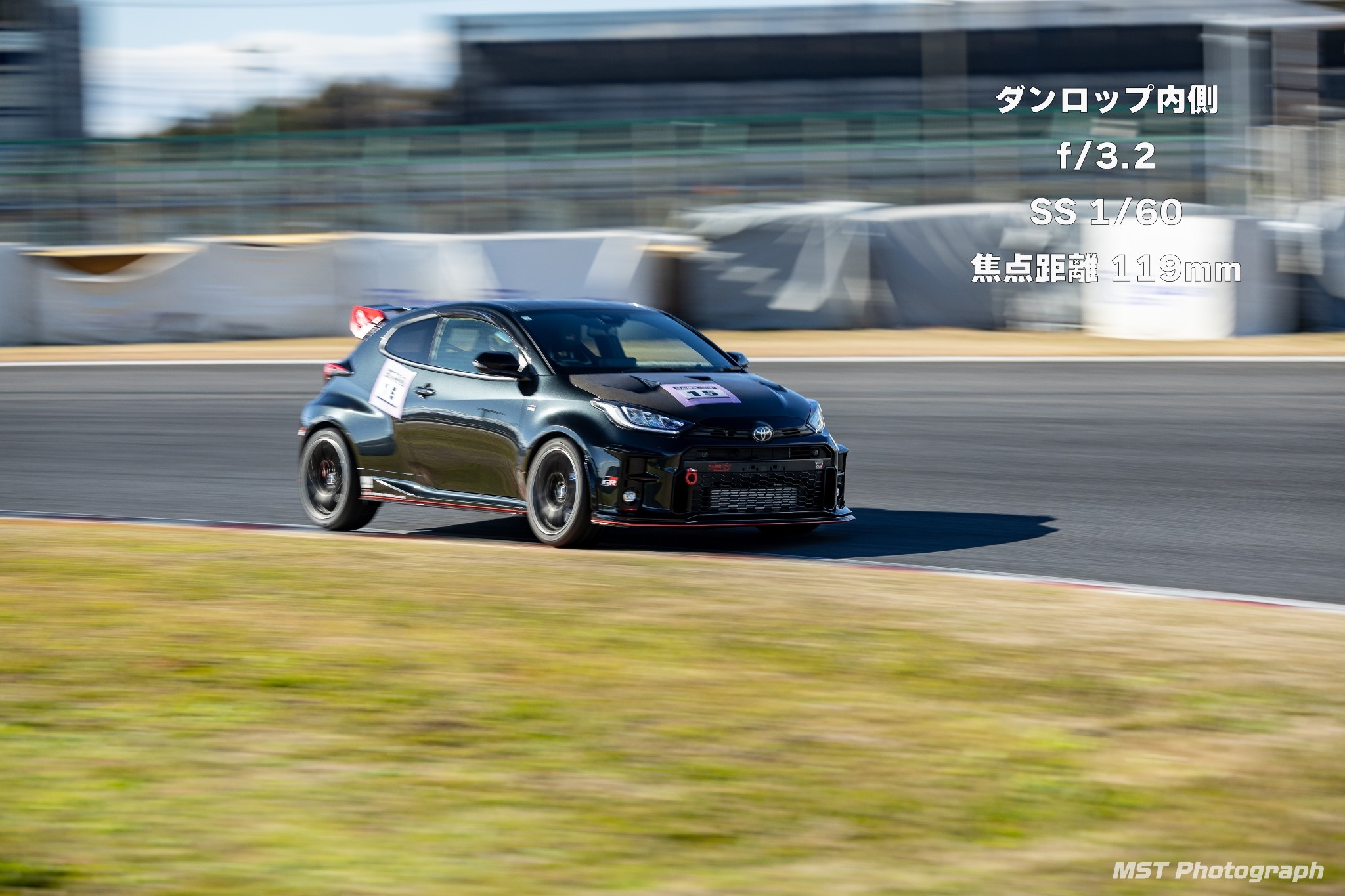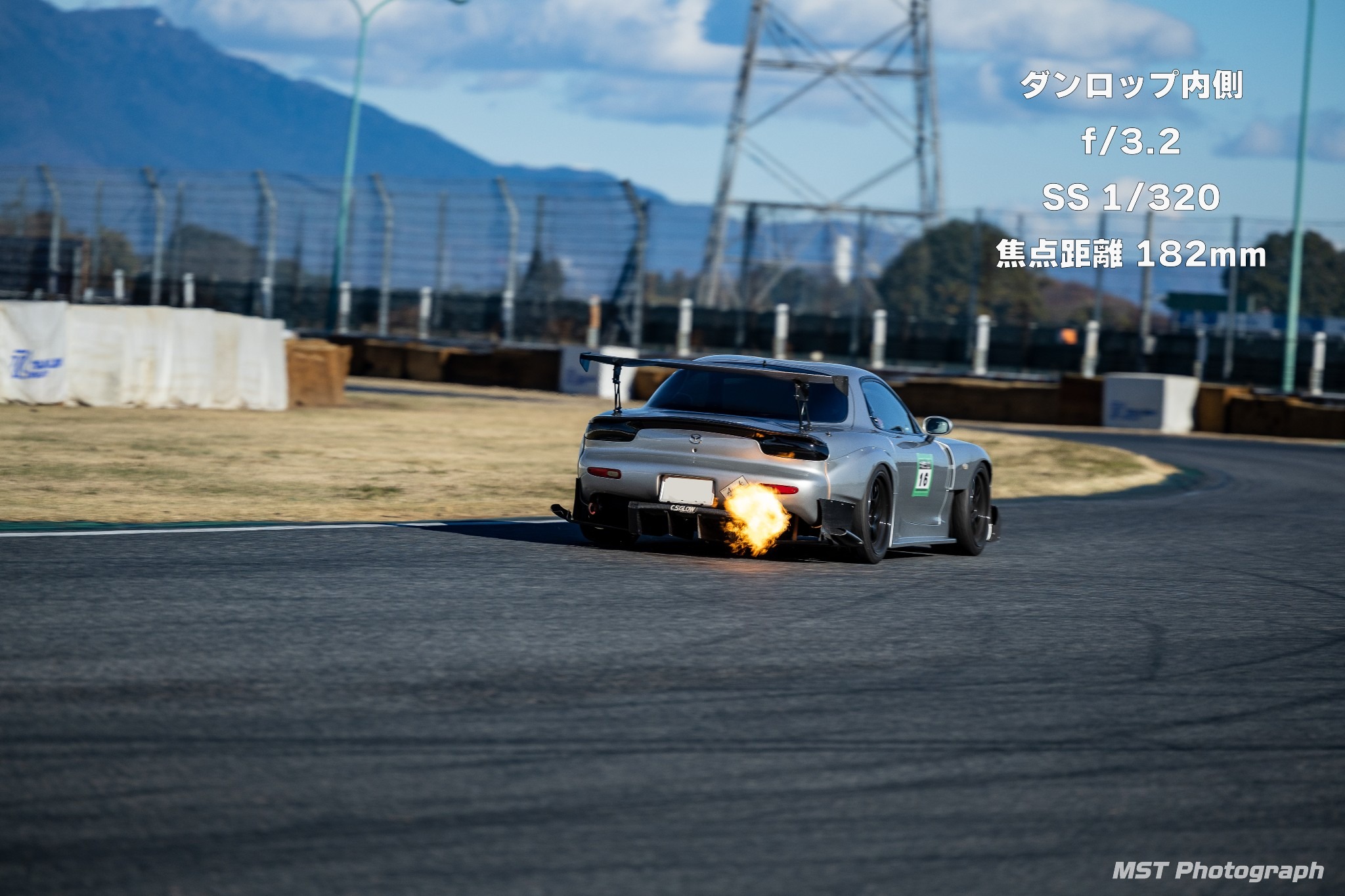 内側に向かってくる車を流し撮りする形がいいかなと思います。