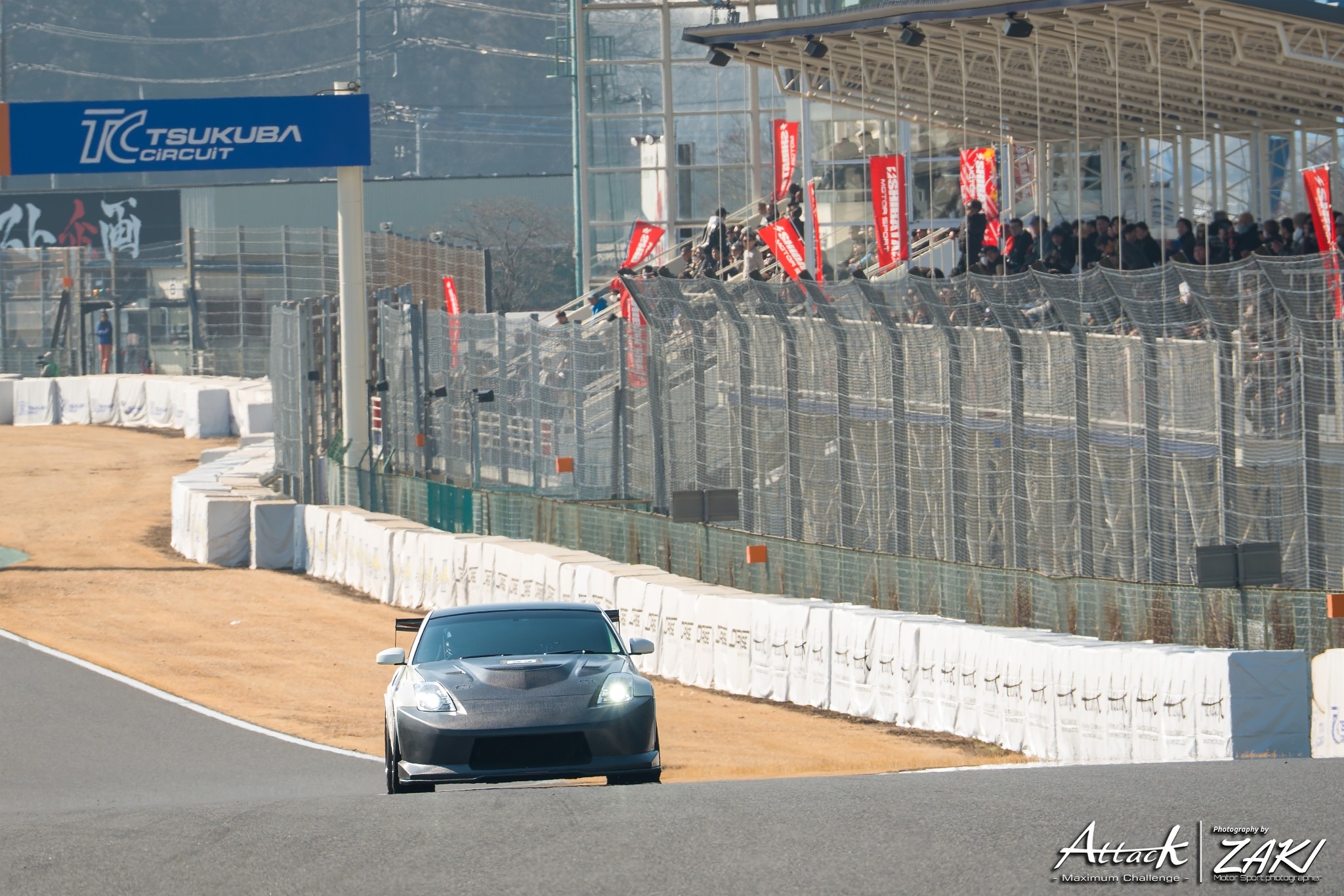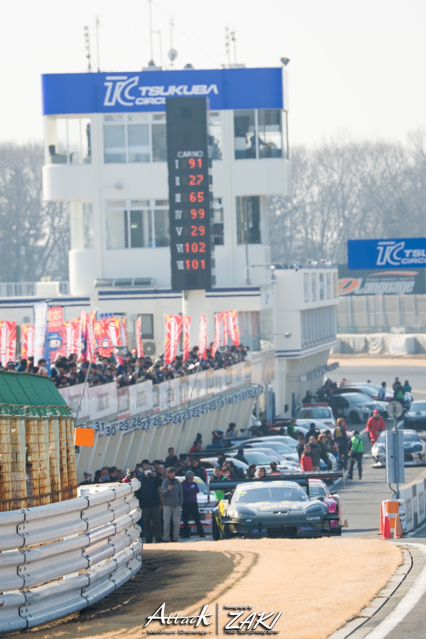 最終コーナーからホームストレートを駆け抜け1コーナーに突っ込んでくるアタック車両。そしてベストタイム更新した際のお客様の盛り上がり……その日Attack筑波でしか見れない光景 雰囲気がここにあります!
